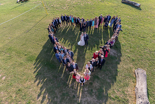 Gruppenbilder fertigen wir ganz nach Ihren Wünschen an, natürlich auch in Herzform von oben. Auf Wunsch bekommen Ihre Hochzeitsgäste ein Gruppenfoto am Abend der Feier ausgehändigt.